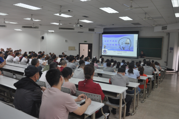 为进一步贯彻落实教育部下发的防灾减灾救灾及安全工作要求, 5月19日,沙河饮食服务部牵头举办了沙河校区安全知识讲座,特邀保卫处消防科张永辉老师,为后勤饮食、宿管、商贸、幼儿园等多部门员工讲解了多类安全知识。
